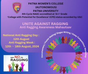 Patna Women’s College (Autonomous) observed Anti-Ragging Day on 12th August 2025, marking the beginning of Anti-Ragging Week (12th–18th August) in line with UGC guidelines.The activities organised on Day 1 comprised the screening of documentaries on the harmful effects of ragging and an orientation workshop for newly appointed teaching and non-teaching staff. In the workshop, Dr. Prabhas Ranjan, Member Secretary of the Anti-Ragging Committee, presented PWC’s strong prevention strategies, awareness drives, and effective reporting channels—ensuring a safe and respectful campus for all.
