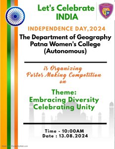 A Poster Making Competition was organised in the Department of Geography on 13.08.2024 for the students of UG Semester V to celebrate the Independence Day. The theme of the event was Embracing Diversity Celebrating Unity.