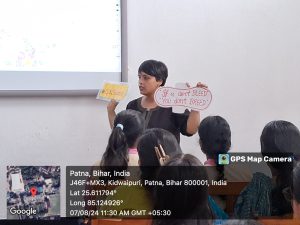 The Department of Communicative English and Media Studies at Patna Women’s College, Autonomous, organized an interactive session on “Creating Effective Media Campaigns for Menstrual Health,” led by Surbhi Kumari, the Gender and Communication Lead at SumArth. The workshop commenced with an introduction to media campaigns and their objectives, focusing specifically on menstrual health awareness, engagement, advocacy, and action.