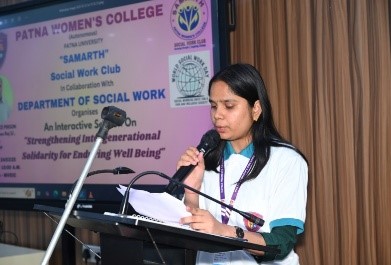 The Department of Social Work of Patna Women’s College (Autonomous) Patna University, in collaboration with the Social WorkClub ‘SAMARTH’ at MVEIC (Mother Veronica Excellence and Innovation Centre), organized an interactive session to observe World Social Work Day. The theme for this year was “Strengthening Intergenerational Solidarity for Enduring Well-being.” World Social Work Day is a globally celebrated annual event that acknowledges the significant contributions of social workers in enhancing individual well-being and promoting social justice. The session featured Father Jesu Raj SJ, Director of Ashadeep, as the esteemed resource person. He engaged the club members in an interactive discussion, emphasizing the role of intergenerational solidarity in shaping a better future. The session emphasized how fostering intergenerational bonds contributes to resilient societies, environmental sustainability, and the transfer of wisdom across age groups. The event concluded with a Vote of Thanks delivered by Sister Sanjana A.C., Assistant Professor, Department of Social Work. The entire program was successfully coordinated by Dr. Mridul Mishra, with the presence of faculty members Sister Sanjana A.C. and Sister Bhagyam A.C. The session was skillfully moderated by Preety Singh, President, Social Work Club ‘SAMARTH’ and MSW student (Semester 2).