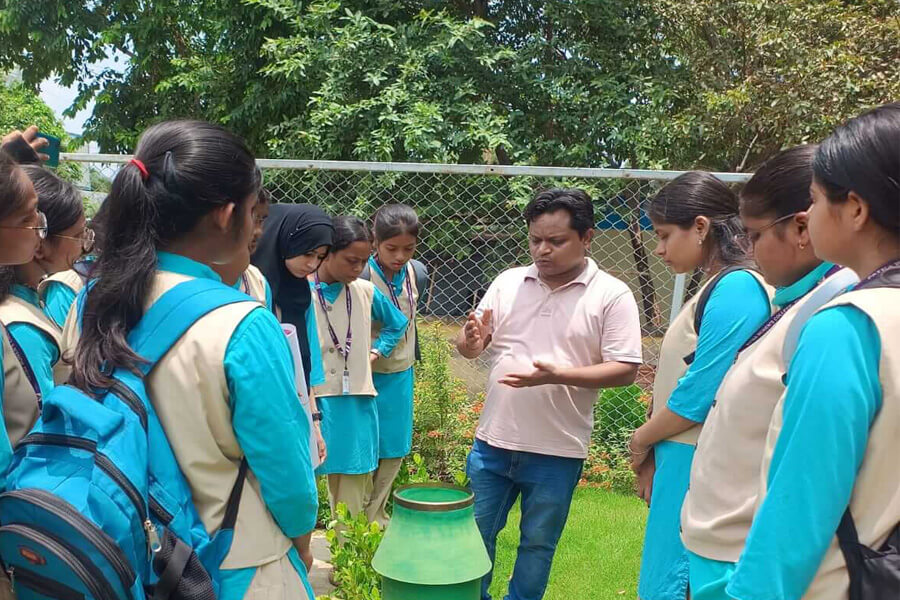The day began with an introductory session where officials from IMD warmly welcomed the students and offered an overview of meteorology and the crucial role IMD plays in weather monitoring and forecasting across the country. The visit began with demonstrations of key instruments, in the Observatory, used in measuring atmospheric phenomena. Students were shown the rain gauge, the anemometer and both single and double Stevenson screens.