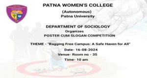 The Department of Sociology organized poster making competition on anti-ragging with semester 5 and slogan making competition with semester 1 students. The theme was “ Ragging free Campus: A safe haven for all”.