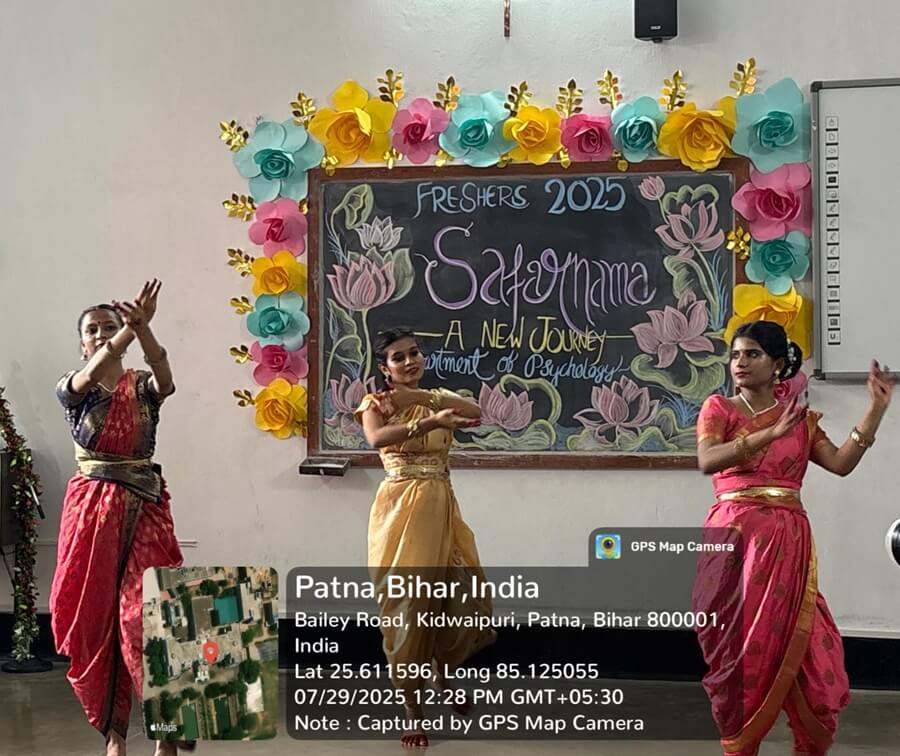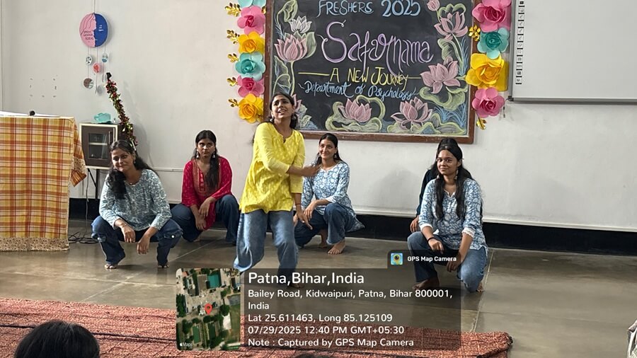 The Department of Psychology, Patna Women’s College organised Fresher’s Day for UG I and PG I students on 29/07/2025. The program started with a prayer dance followed by a melodious welcome song. Students were enthusiastic in dance and skit performances. Mr. Adweetiya Sinha, Assistant Professor, Department of Political Science and Ms. Kriti Rani, Performing Arts were invited as guests. They enlightened the occasion with their clear and sharp observations and words of wisdom. The program also included certificate distribution by the guests of different competitions held earlier in the Department.
