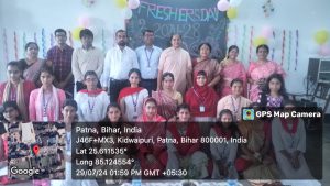 आज दिनांक 29/07/2024 को हिंदी, उर्दू एवं संस्कृत विभाग की 2024-2028 सत्र की प्रथम वर्ष की छात्राओं द्वारा फ्रेशर्स डे का आयोजन किया गया। कार्यक्रम के मुख्य अतिथि थे जंतु विज्ञान विभाग के असिस्टेंट प्रोफेसर डॉ सुमित रंजन व भूगोल विभाग की असिस्टेंट प्रोफेसर सिस्टर अन्ना ए सी।