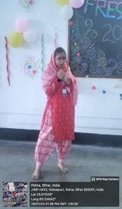 कार्यक्रम का संचालन हिंदी विभाग की छात्रा राज शांति व प्रिया द्वारा किया गया। हिंदी विभाग की अंजलि व प्रियंका ने प्रार्थना नृत्य की प्रस्तुति दी व तीनों विभाग की छात्राओं द्वारा स्वागत गान प्रस्तुत किया गया। हिंदी विभाग की आरज़ू ने एकल नाटक की प्रस्तुति दी। संस्कृत विभाग की छात्रा मनुप्रिया ने संस्कृत श्लोक व शिखा ने संस्कृत कविता का पाठ किया। हिंदी विभाग की छात्रा श्वेता द्वारा हास्य कविता का पाठ किया गया व उर्दू विभाग की छात्रा खंसा द्वारा नज़्म पेश की गई। हिंदी विभाग की छात्रा अंजलि ने बिहार के लोक नृत्य की प्रस्तुति दी। फ्रेशर्स डे का उद्देश्य नवागंतुक छात्राओं की प्रतिभा को पहचानकर उन्हें और आगे बढ़ने को प्रेरित करना है। छात्राओं को संबोधित करते हुए मुख्य अतिथियों व हिंदी विभागाध्यक्षा डॉ मंजुला सुशीला ने उनका उत्साहवर्धन किया। कार्यक्रम की समाप्ति से पूर्व मुख्य अतिथियों द्वारा हिंदी प्रथम वर्ष की छात्रा अंजली को मिस फ्रेशर्स घोषित किया गया।इस अवसर पर हिंदी, संस्कृत और उर्दू विभाग के सभी शिक्षक उपस्थित थे।