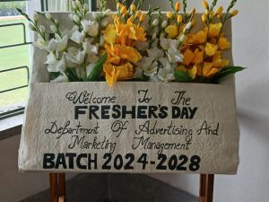 The Department of Advertising and Marketing Management successfully organized the Freshers Day program on July 30, 2024. The event was a vibrant and colorful celebration, with students displaying their talents through dance, skits, singing, and various other performances.