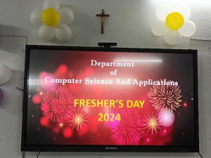 The Department of Computer Science & Applications, Patna Women’s College, Autonomous, Patna University, Patna organized a Freshers’ Day Programme 2024 for the MCA Semester –I (2024-2026) & PGDCA Semester -I (2024-2025) on 29.08.2022 in the New Lab, Dept. of Computer Science & Applications, MCA Block. The program started at 1:00 p.m. with Welcome address delivered by Sonam Kumari. The Cultural Coordinators Dr. Sister Celine Crasta A.C. & Ms. Enakshi Biswas was welcomed with a floral bouquet. Ms. Sushmita Chakraborty, Programme Coordinator, PGDCA & Assistant Professor welcomed the Guest and other faculty members of the dept.