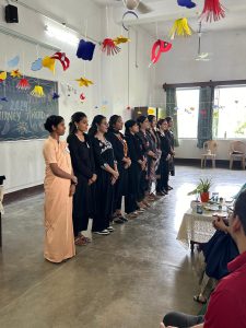The programme started with watering a plant sapling followed by felicitation of the guests. The programme started with a prayer dance to invoke the divine presence of God. It was followed by a group song Besabriyan. The next event was a narrative poem depicting the journey of a student’s life in college. It was followed by a group dance. Then the students presented a skit, based on Rokeya Sakhawat Hossain’s novella “Sultana’s Dream”. The next item “English Vinglish” highlighted the quirky English language. The programme ended with a medley of Baul song and Rabindra Sangeet. The programme was entertaining as well as meaningful. The guests were impressed by the performances. Bhawna Anand of B A semester 1 was crowned Ms. Fresher.
