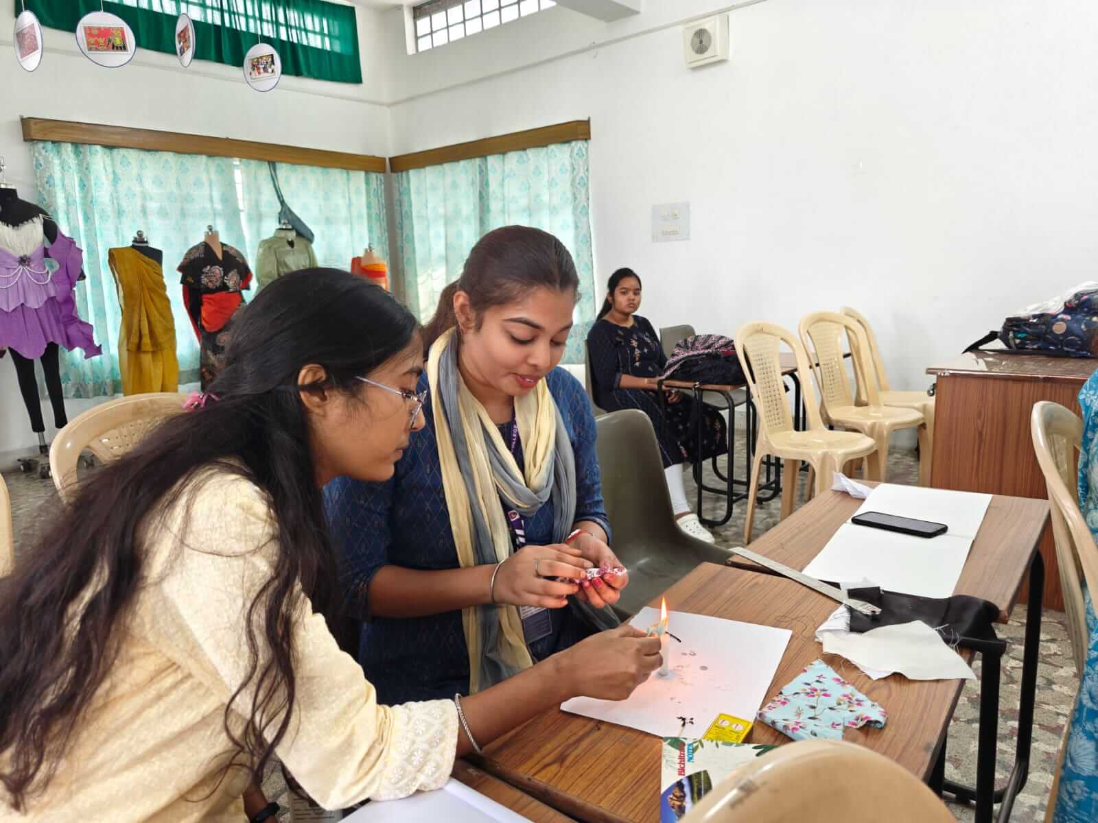 Dr. Bhagat explored the importance of fiber identification for Fashion Designing students in her lecture. Beyond theoretical knowledge, the lecture incorporated a significant practical component, allowing students to actively engage with various textile samples. A highlight of the session was a supervised burning test, where students carefully observed the burning characteristics, odor, and residue of different fibers – a crucial technique for preliminary identification. This hands-on experience complemented the expert insights into the properties and identification of both natural and synthetic fibers.