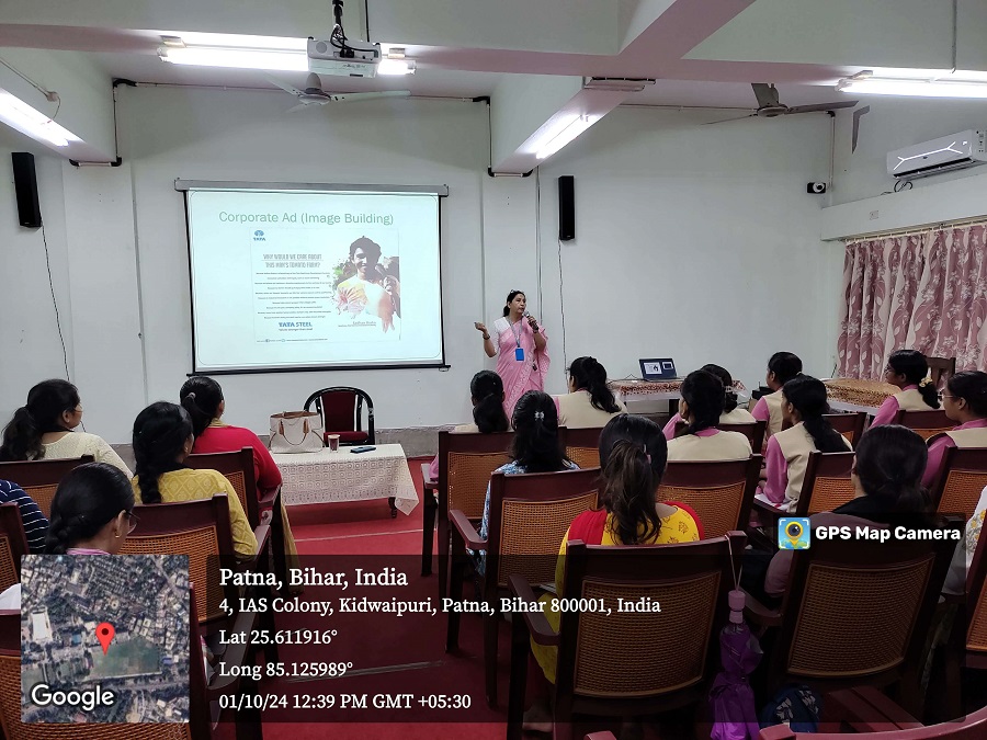 As a part of the MoU collaborative lecture series, The Department of Mass Communication of Patna Women’s College (autonomous) Patna University organised a guest lecture on ” Career Pathways in Advertising” on 01.10.2024. The event was graced by Ms. Priya Manish Kumar , Coordinator,BJMC, St. Xavier’s College of Management and Technology, Patna as the resource person.
