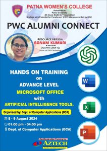 In this interactive and immersive training session, students learnt how to leverage AI-driven tools in MS Office to streamline tasks, automate workflows, and make data-driven decisions. Our expert trainers Alumni BCA session (2009 – 2012) Ms. Sonam Kumari, M.Tech (CSE) and co Trainer Mr. Azad Deepak, Aztech Technology and Engineers pvt. Ltd. guided students through hands-on exercises and real-world scenarios, ensuring enhancement of their practical skills and knowledge.