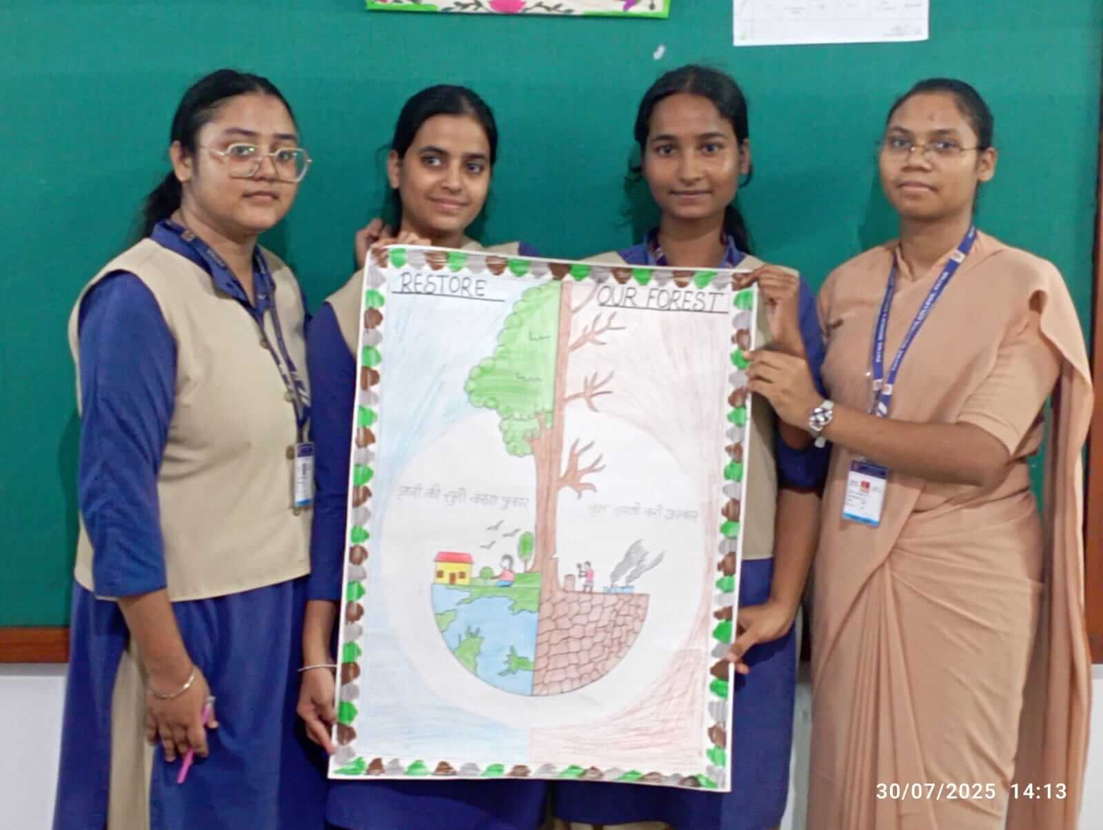 दिनांक 24/07/2025 को पटना वीमेंस कॉलेज द्वारा वन महोत्सव कार्यक्रम के अंतर्गत अंतर्विभागीय स्तर पर पोस्टर मेकिंग प्रतियोगिता आयोजित की गई जिसका विषय था वन संरक्षण। हिंदी विभाग की तीनों सेमेस्टर की छात्राओं ने 2-2 समूहों में बढ़- चढ़कर भाग लिया और चित्रकला के माध्यम से अपनी प्रतिभा का परिचय दिया। उन्होंने अपने पोस्टर में प्रभावशाली तरीके से पर्यावरण संरक्षण का संदेश दिया और अपनी रचनात्मकता का प्रदर्शन किया।यह प्रतियोगिता विभागाध्यक्ष डॉक्टर कुमार धनंजय के मार्गदर्शन में आयोजित की गई। कुल छह समूहों ने इस प्रतियोगिता में भाग लिया।निर्णायक मंडल के सदस्यों डॉक्टर कुमार धनंजय, डॉक्टर ब्रह्मानंद और श्री उत्तम बर्मन ने तीन पोस्टरों का चयन किया और उन्हें क्रमशः प्रथम,द्वितीय तथा तृतीय स्थान प्रदान किया।विजेताओं के नाम हैं-