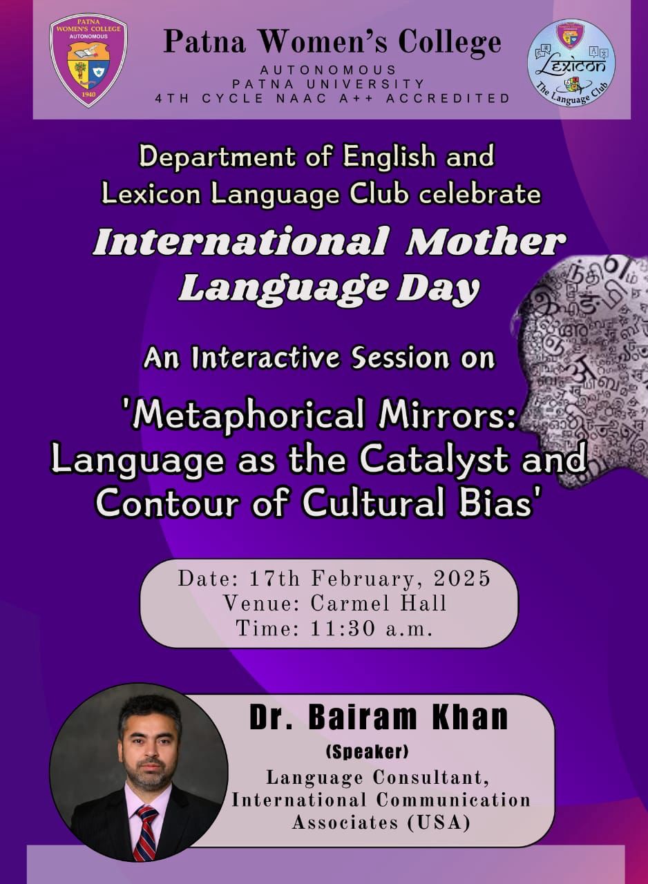 Department of English in collaboration with Lexicon Language Club, Patna Women’s College organised an insightful seminar on the role of language in shaping cultural perceptions, featuring renowned linguist and cross-cultural studies expert Dr. Bairam Khan. The event was conducted by Dr. Sahar Rahman, HOD of the Department of English, and Dr. Devina Krishna, Coordinator of the Lexicon Language Club, and PG students Swati Alice Clifton, Mouli Pulak, Saanvi and Shruti Singh.