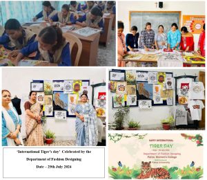 The Department of Fashion Designing at Patna Women’s College celebrated ‘International Tiger Day’ on July 29, 2024, at 1:00 p.m. This day serves as a powerful reminder of the significant role that tigers play in maintaining the balance of the ecosystem. During the event, the department organized a poster-making and T-shirt painting program as part of an awareness program to conserve wildlife, especially tigers. Biological diversity is a global asset for our future generations. Students created and wrote many slogans related to this theme. Many tiger images were inspired by the folk art of India. All 36 students of PG and UG semester 1 participated in this program. The event was conducted under the guidance of the department head, Dr. Shemushi Madhu, coordinator Ms. Geetanjali Chaudhry, and faculty Ms. Asha Pandey. Their paintings were both informative and creative.