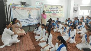 The Department of Philosophy celebrated International Yoga Day on 21st June 2023 at the Yoga Centre in the college. Teachers from different departments and students from Philosophy, Applied Yoga, NSS and NCC participated in the program. The yogic Asanas were performed as per the International Yoga Day protocol under the guidance of Ms. Mitu Kumari, Yoga instructor.