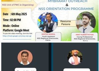 On 6th May 2025, The NSS Unit of Patna Women’s College (Autonomous), under Patna University, hosted an inspiring and insightful virtual session titled “My Bharat Outreach and NSS Orientation Programme. The two resource persons- Mr. Deepak Mandal, Youth Asst., NSS Regional Directorate, Patna & Mr. Ankit Kumar Pathak, Young Professional, NSS Regional Directorate, Patna was invited for this orientation Programme. This impactful event centered around youth empowerment, civil responsibility, and the transformative potential of national service in realizing the vision of a Viksit Bharat.