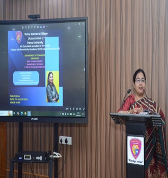 On August 07, 2024, The Department of Commerce, Patna Women’s College, Autonomous, organised an informative session on “Navigating the Numbers: A Talk on Decoding Budget 2024”, under PWC Alumni Connect. The Resource Person for the event was CA Pallavi Jha, Chairperson, Patna Branch of ICAI, Institute of Chartered Accountants of India. She is alumna of Department of Commerce, Patna Women’s College. The Programme commenced with the inaugural address by Dr. Soofia Fatima, H.O.D, Department of Commerce & Dean, Faculty of Commerce and Management. She accentuated that the budget 2024-25 is certainly a promising endeavour to traverse the economic landscape with a focus on promoting employment, enhancing agricultural production, expediting economic growth and equipping infrastructural development. Dr. Ameeta Jaiswal, President, Patna Women’s College Alumni Association (PWCAA), Head Department of Philosophy, Patna Women’s College, addressed the students and highlighted the role of PWC Alumni Association. She shared her valuable insights for the event and presented the importance of Alumni Connect. She was presented with a token of respect by CS Shweta Shah, Coordinator, B. Com Commerce Professional. The resource person, CA Pallavi Jha was presented with a sapling as a token of appreciation by Ms. Puja Kumari, Assistant Professor, Department of Commerce. Her session highlighted the key areas of BUDGET 2024 -25 WITH NATIONAL AND INTERNATIONAL PERSPECTIVES. She emphasised on the four major segments for the budget allocation on Women, Youth, Poor and Farmers. She gave an insight about the implications of budget on Employment, Skilling, MSMEs, Middle class, Urban Development, etc. She articulated the changes in the new tax regime and illustrated the new tax slabs. This was followed by an interactive question and answer session. Ms. Nikky, Assistant Professor, Department of Commerce gave feedback for the session. The programme was moderated by Anushka Deo, student of B. Com (Accounting and Finance) and vote of thanks was given by Aliba Nadeem. The session concluded with the National Anthem. A total of 212 Students of B. Com Semester V, B. Com- Commerce Professional, Semester III, and the teachers of the Department of Commerce attended the session.