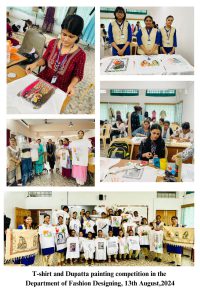 Department of Fashion Designing, Patna Women’s College organised a T-shirt and Dupatta painting competition on 13th August,2024. This programme was inspired by 78th Independence Day and conducted under the guidance of coordinator Geetanjali Chaudhary and Expert faculty Asha Pandey. All 37 UG and PG students participated and celebrated this event.