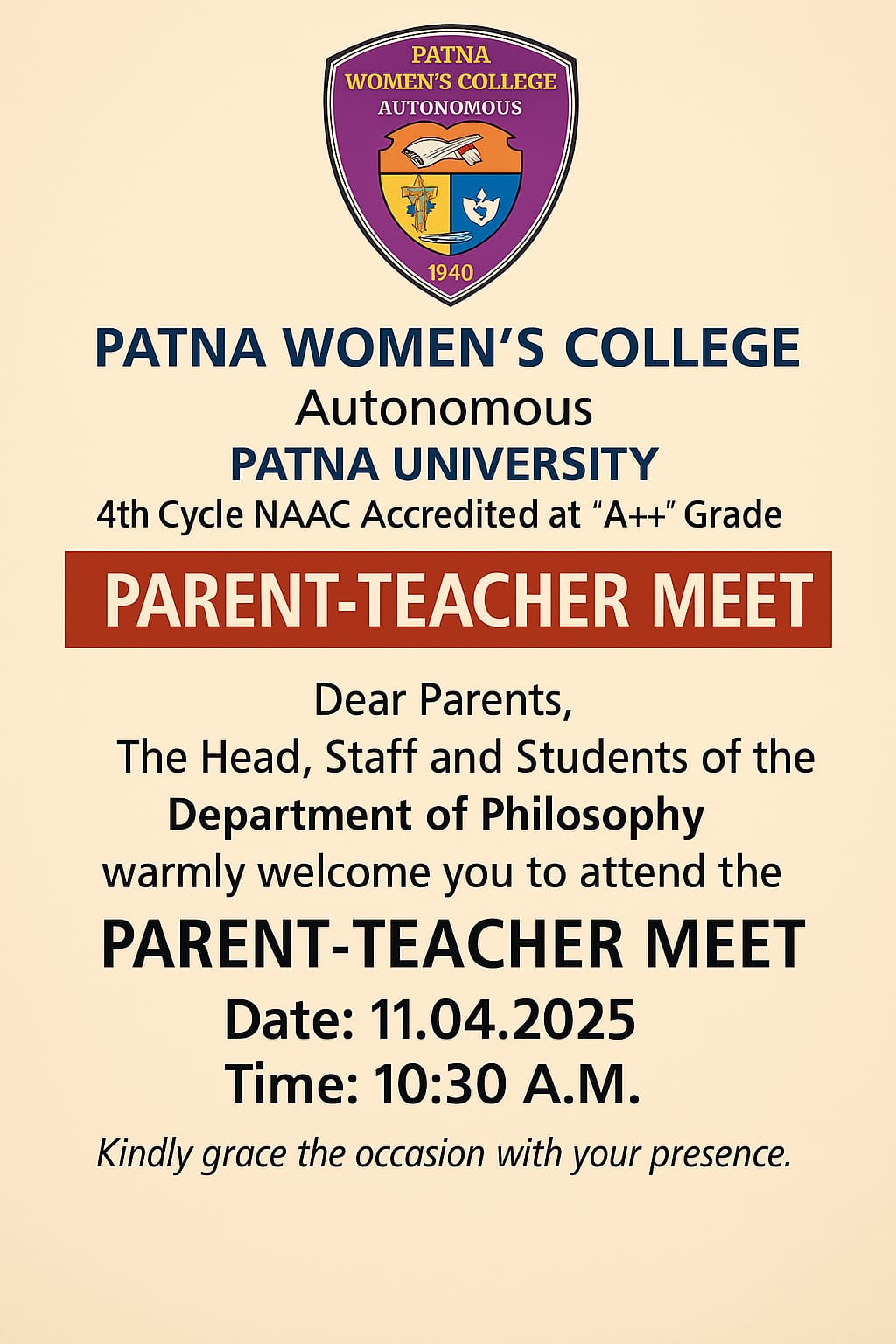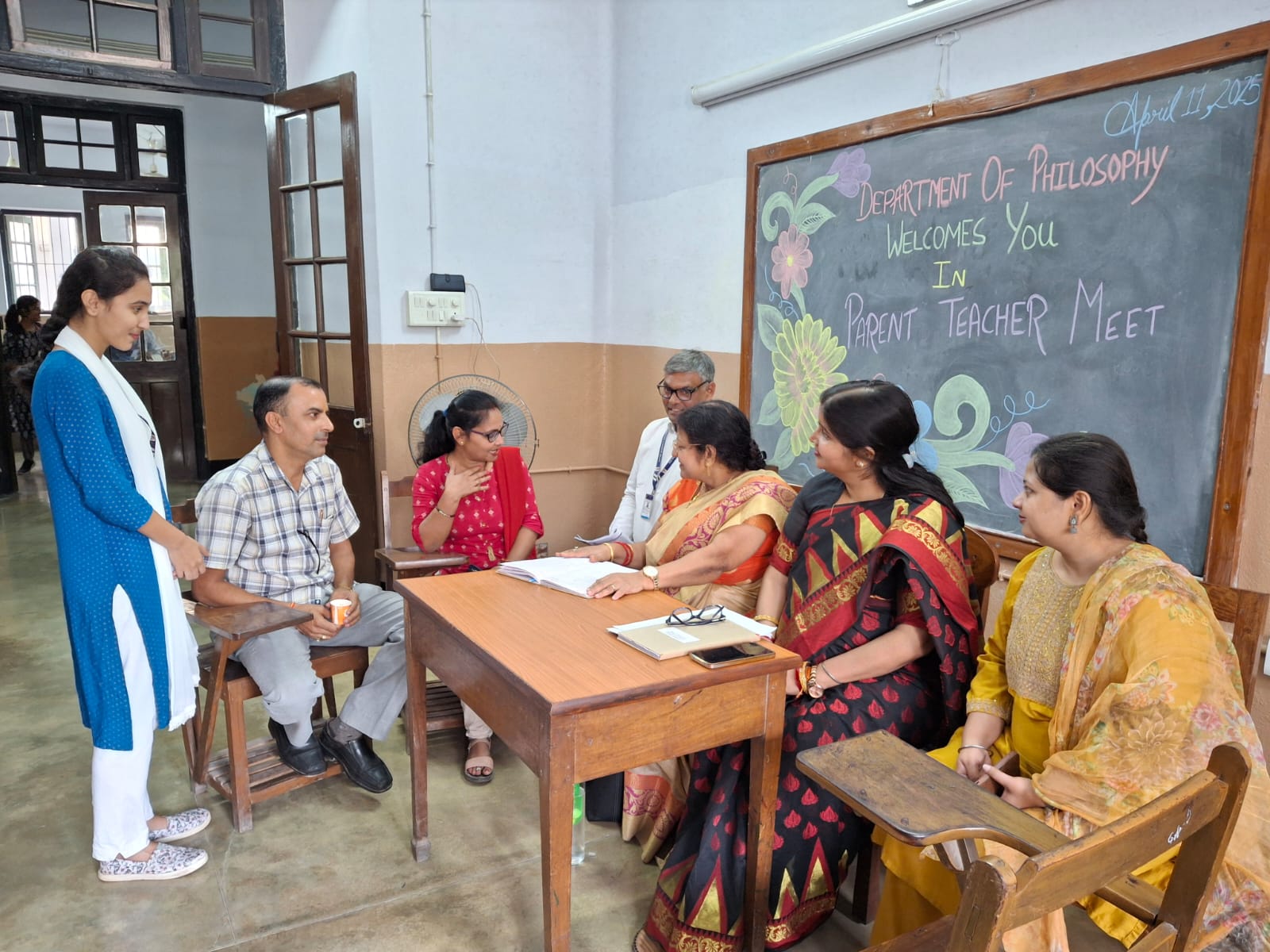 The Department of Philosophy organized Parent-Teacher Meet on 11.04.2025 in which Parents of the students of different semesters attended the meeting and interacted with teachers of the Department regarding their ward’s performance in the class and Mid-Sem Examinations. The Head of the Department Dr. Ameeta Jaiswal and the teachers Dr. Keerti Choudhary, Dr. Kamlendra Kumar and Ms. Richa Priya were present and interacted with parents.