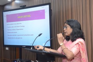 Dr. Shrivastava’s address was followed by a thought-provoking lecture by Dr. Reshma Sinha on the topic “THE EXCITING WORLD OF POSSIBILITIES THAT AWAITS ZOOLOGY GRADUATES.” She explored the scopes and lucrative career opportunities available to students after completing their Bachelors and Masters Degree in Zoology and in related specializations like Forestry, Veterinary Science, Toxicology, and Marine Science.
