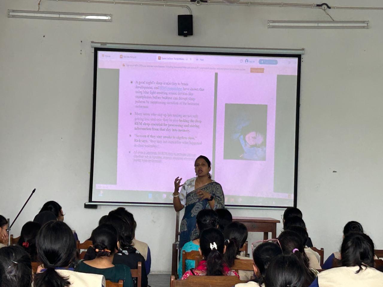 The session started at 12:00 PM in Room no. 1, Main Block. The resource person, Ms. Roma, Head, Department of Mass Communication, Patna Women’s College, Autonomous, Patna University delivered the lecture on ‘Mind on Screen.’ She emphasized on the psychological impact of social media use. After the lecture, few selected videos were played, shot by the students from different departments for ‘Mental Health awareness Video Making Competition’. Thereafter, Ms. Roma announced winners of the competition. The lecture was attended by students of Department of Psychology from UG 1st, 2nd and 3rd, PG 1st and 2nd year, participants of Video Making Competition, and teachers from Department of Psychology. Riya Singh from PG 2nd year moderated the session and Shyeni Sharan from UG 3rd year presented the vote of thanks.