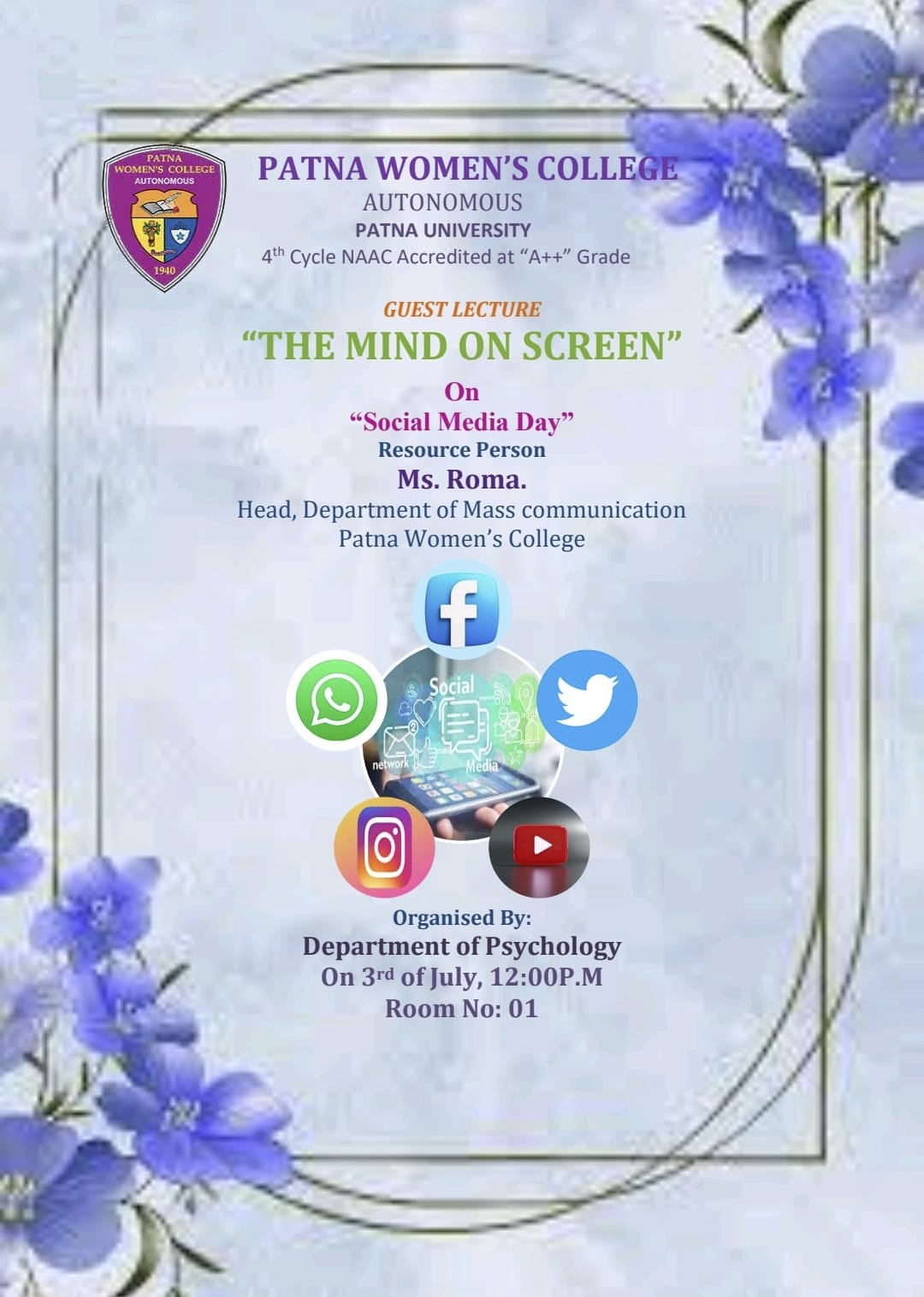 To recognise the impact of social media on communication and connection, the Department of Psychology, Patna Women’s College, Autonomous, Patna University observed ‘Social Media Day’ on 3rd July 2025. A guest lecture was organised on the topic ‘Mind on Screen’.