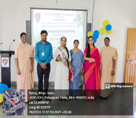 The event ended up by the declaration of the result of Miss Fresher by the esteemed chief guests and the cultural co-ordinators Dr. Vinita Priyadarshi, Head, Department of Political Science and Mr. Rajeev Ranjan, Assistant Professor, Department of Zoology. ‘Sujata Singh’, student of MSW Sem I won the title of Miss Fresher. At the end the vote of thanks was proposed by Dr. Mridul Mishra Head Department of Social Work. Faculty Members Sr. Sanjana A.C Assistant Professor, Department of Social Work and Sr. Bhagyam A.C, Assistant Professor, Department of Social Work were also present. The whole event was moderated by Ms. Pretty Singh, Student M.A in social Work I semester. the student council member Pretty Singh was also present.