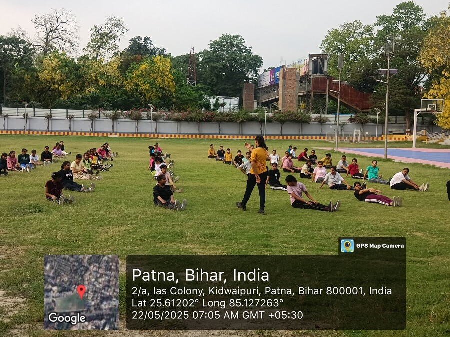 कुल 69 छात्रों ने कैंप में नामांकन कराया, जिनमें से पहले दिन 65 उपस्थित रहे। दिन की शुरुआत वार्मिंग-अप एक्सरसाइज और स्ट्रेचिंग से हुई, जिससे छात्रों को शारीरिक गतिविधियों में सहजता से शामिल होने में मदद मिली। इसके बाद चयनित समूहों द्वारा नेतृत्व में बेसिक एक्सरसाइज कराई गई, जिससे नेतृत्व क्षमता और भागीदारी को बढ़ावा मिला।