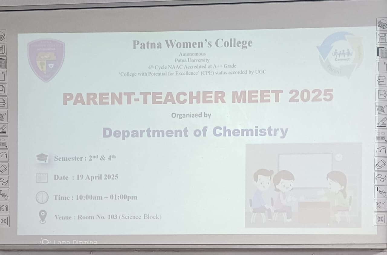 The Department of Chemistry organized Parent-Teacher Meet on 19.04.2025 in Lab 1 in which Parents of the students of semester 2 & 4 attended the meeting and interacted with teachers of the Department regarding their ward’s performance in the class and Mid-Sem Examinations. The Head of the Department Dr. Madhu Rani Sinha along with the faculty members Dr. Jyoti Chandra, Dr. Jyotsana Kumari and Mr. R N Roy Majumdar were present and interacted with parents.