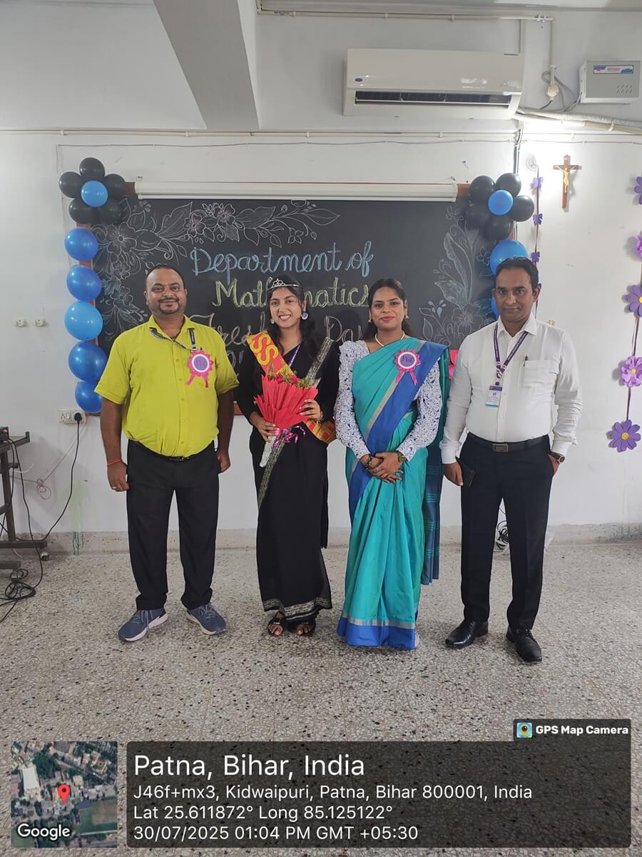 Patna Women’s College organized a vibrant Three-Day Fresher’s Day Programme from July 28, 2025 to July 30, 2025. The programme began with the chief guest inaugurating the event by cutting the ribbon, followed by a warm welcome by Dr. Ravi Kumar, Head of the Mathematics Department, who greeted the guest by presenting plant saplings. On the third day of the programme, Department of Mathematics welcomed freshers and briefed Department’s achievement and goals. The students participated actively and showcased their exceptional talents, making the event an enormous success. The Cultural Committee members, Dr. Jyoti Chandra, Assistant Professor, Department of Chemistry and Dr. Adweetya Sinha, Assistant Professor, Department of Political science graced the cultural performances of the students and motivated them to showcase their talent and achieve great heights. The program begun with a welcome song followed by solo dance performances, melodious choir singing, poetry “Shakti Swaroopa” by Nishi and a dynamic group dance. A major highlight of the event was the crowning of Miss Simran Kumari as Miss Fresher, in recognition of her confidence, elegance, and outstanding stage performance. During the event, the students expressed their gratitude to Dr. Sister M. Rashmi A.C., Principal, Patna Women’s College, and Dr. Sister M. Tanisha A.C., Vice-Principal, Patna Women’s College for their unwavering support and motivation throughout the programme. The newly enrolled students exhibited their talents and expressed their sincere gratefulness to their teachers, staffs, seniors and batchmates. The program was concluded with Marvelous Ramp walk and speech of Dr, Ravi Kumar, Head, Department of Mathematics and in the end Simran, proposed the Vote of Thanks for the beautifully organize.