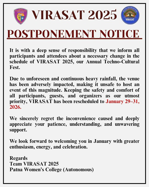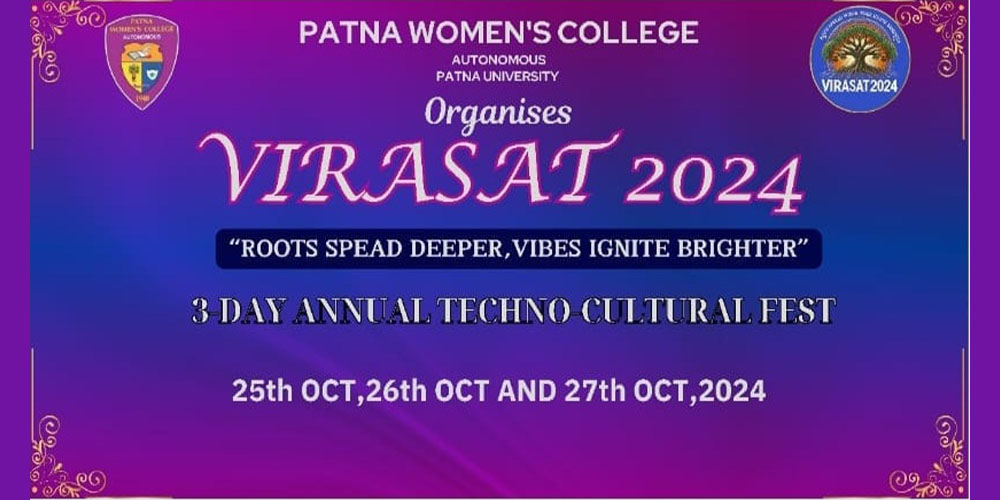October 25, 2024 marked the first day of the 3-day Annual Techno Cultural Fest-Virasat 2024, with the College Day celebration organized by Patna Women’s College (Autonomous) Patna University, with much joy and gaiety for the students of the college in the Open-Air Stage Hall. The event commenced with the hoisting of the college flag which was followed by the College Anthem. A mesmerizing prayer dance submerged the audience in the essence of spiritualism which was followed by a group welcome song. Dr. Sister M Rashmi AC, Principal, Patna Women’s College encouraged and motivated the students by manifesting the lines, “Patna Women’s College is an epitome of excellence, culture, discipline and empowerment”. Thereafter, the much anticipated and most awaited Miss PWC contest took place. The contest comprised of three rounds. The contestants presented different states in the round one, which was followed by a punjabi folk dance. The round two was a written round where the former was supposed to portray their writing skills in a limited time afterwhich, Bihar folk song was presented by the students.The final round was an on-the spot question round where the judges asked relevant questions. Thereafter, RJ Shreyansh led up the arena with his energetic performance. To our VIRASAT culture, a new addition took place for the very first time in the history of Patna Women’s College as the teachers presented a surprise Ramp Walk Show to promote Khadi that amazed the entire audience. The jury members for the Miss PWC Contest 2024 were Dr. Shailaja Sinha, Head, Department of Sanskrit, Ram Krishna Dwarika College, Patliputra University, Patna; RJ Shreyansh, Red FM. 93.5 and Dr Pallawi Ambreesh Kumar, Head, Department of Business Administration, Patna Women’s College. The winners of Miss PWC Contest 2024 were Shreyashvi Raj(winner); Ayesha Singh (1st Runner Up) and Riya Singh (2nd Runner Up). The cultural coordinators Ms. Enakahi Dey Biswas, Coordinator, Performing Arts, Ms. Puja Kumari, Assistant Professor, Department of Commerce coordinated the event with utmost dedication which made the event a success.