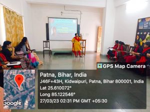 The Department of Social Work on 27.03.23 organized a Workshop on ‘Skill Enhancement and Training for Street Play’. The Resource Person was Mrs Enakshi Dey Bishwas , Co-ordinator of Performing Arts, Patna Women’s College. Street Plays are considered to be one of the most important ways of connecting to people and addressing some social cause or issue. The students were informed about the purpose, basic skills and requirements in performing street plays There were different sessions like body language of the act, categorisation of the actors as per requirements, how to connect to the audiences, the language to be used, the connection among the groups as well as the audiences etc which were taught practically, The students also prepared street play on environment protection and women empowerment and then the students’ performance was assessed by Mrs Enakshi, Co-ordinator of Performing Arts. The whole session was interesting and the students actively participated and also enhanced their performance skills as per the instructions. Such skills will enhance their performance when they go for outreach visits and perform street plays as a part of social awareness generation programs etc. The session ended up with the vote of thanks proposed by Ms. Mridul Mishra Head, Department of Social Work, the faculty members of Department of Social Work Sr Sanjana A.C , Assistant Professor Deptt of Social Work and Aishwarya Roy , Assistant Professor, Deptt of Social Work were also present