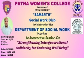 The Department of Social Work of Patna Women’s College (Autonomous) Patna University, in collaboration with the Social WorkClub ‘SAMARTH’ at MVEIC (Mother Veronica Excellence and Innovation Centre), organized an interactive session to observe World Social Work Day. The theme for this year was “Strengthening Intergenerational Solidarity for Enduring Well-being.” World Social Work Day is a globally celebrated annual event that acknowledges the significant contributions of social workers in enhancing individual well-being and promoting social justice. The session featured Father Jesu Raj SJ, Director of Ashadeep, as the esteemed resource person. He engaged the club members in an interactive discussion, emphasizing the role of intergenerational solidarity in shaping a better future. The session emphasized how fostering intergenerational bonds contributes to resilient societies, environmental sustainability, and the transfer of wisdom across age groups. The event concluded with a Vote of Thanks delivered by Sister Sanjana A.C., Assistant Professor, Department of Social Work. The entire program was successfully coordinated by Dr. Mridul Mishra, with the presence of faculty members Sister Sanjana A.C. and Sister Bhagyam A.C. The session was skillfully moderated by Preety Singh, President, Social Work Club ‘SAMARTH’ and MSW student (Semester 2).