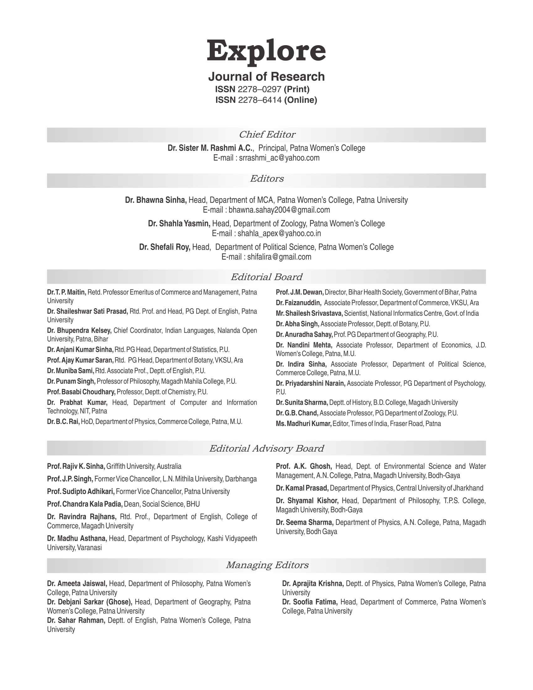 EXPLORE VOL. XII – EDITORIAL BOARD