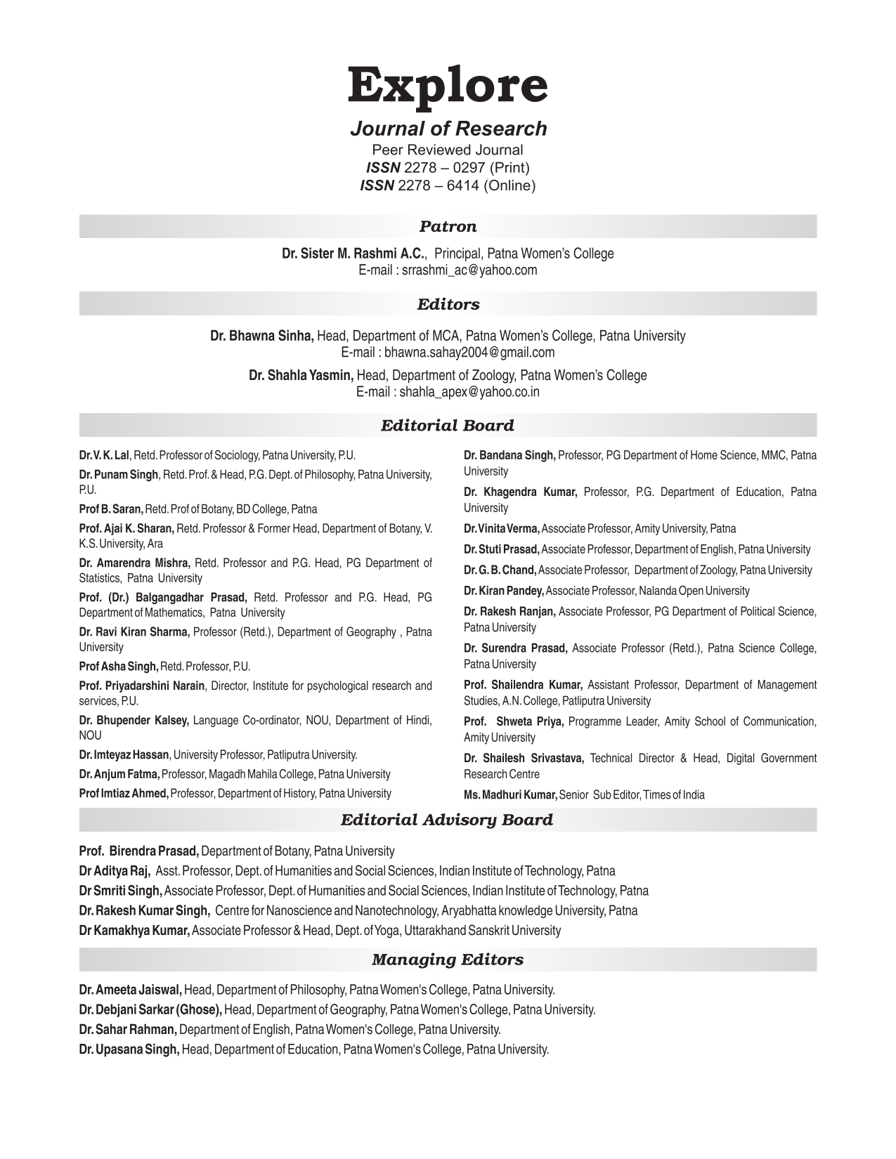 EXPLORE VOL. XIII – EDITORIAL BOARD