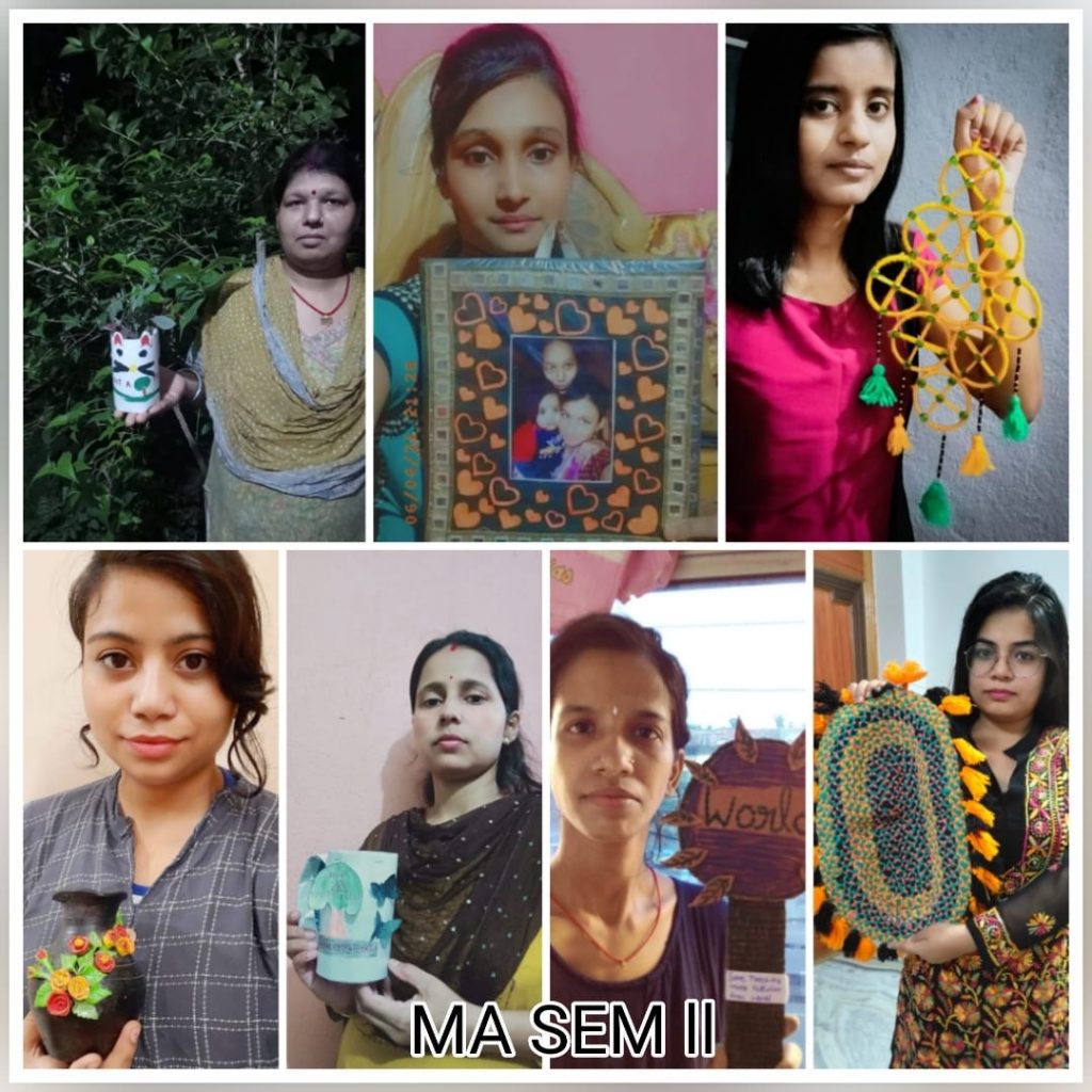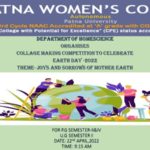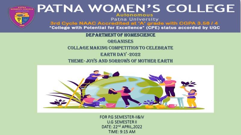 Earth Day was celebrated by the Department of Home Science on 22nd April 2022. The department had organised a Collage making competition on this occasion. The theme of the program was ” Joys and Sorrows of Mother Earth”. Students of P.G. Semester II, IV and U.G. Semester II participated in the program. The competition commenced at 9:15 A.M. in the department.