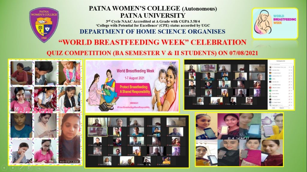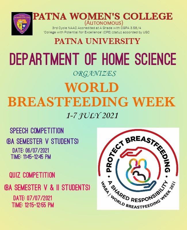 The Department of Home Science had organised a comprehensive activity under the Breastfeeding promotion week (1-7th August 2022). The program initiatied with a teaching aid making competition which was held in the department for the Home Science students on 1st August 2022. Since the theme of the program was “Step up for Breast feeding: Educate and Support”, the teaching aids prepared by the students were used to create awareness amongst adolescent girls. On 6th August the students along with the teachers from the department visited Scientific High School, Lalaji Tola, Patna, and created awareness regarding the facts and benefits of breast feeding. The school students took keen interest in this awareness program and found it quite informative. The program was organised by Dr. Nisha Kumari, Assistant Professor, Department of Home Science.