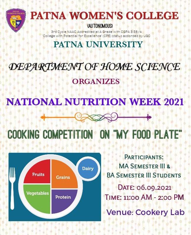 - National and International Days of importance-National Nutrition Week, First Aid Day, Dietetic Day and so on, are marked with various programmes like quiz, exhibition, poster competition etc.