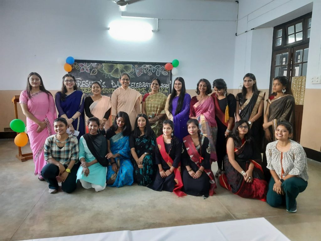 The Department of Home Science, Patna Women’s College had organised Fresher’s Day Program on 29th October 2021. The event was organised to welcome the Semester l students. To bring honour to this occasion, the members of the cultural committee, Miss Manisha Prasad and Miss Enakshi Dey were invited as special guests. The program commenced with a welcome song by the BA semester I students. This was followed by a group dance performance based on the theme “Female liberation”, by MA semester I students. A melodious duet song was further sung by the BA semester I students. A thought provoking write up was narrated by MA semester I student based on “Female Emancipation”. The highlight of the event was a humorous skit with a very powerful message for the youth, performed by BA semester I students. The program concluded with an entertaining dance performance by MA semester I students. The Head of Home Science Department Dr. Sister M. Tanisha A.C. also addressed the students with her encouraging words. The event came to an end with the vote of thanks proposed by M.A Semester I student ( Nikita Sharma). The program was anchored by BA semester I students (Huzaifa and Aliya) and was well coordinated by Dr. Rosy Kumari.
