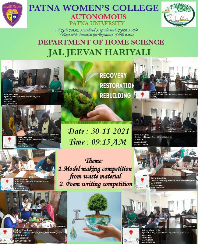 On November 30th, Department of Home Science had organised activities under the “Jal Jeevan Hariyali Mission”. The activities were Model Making Competition from Waste Material and Poem Writing Competition. 27 students participated for both the competitions from UG and PG classes.