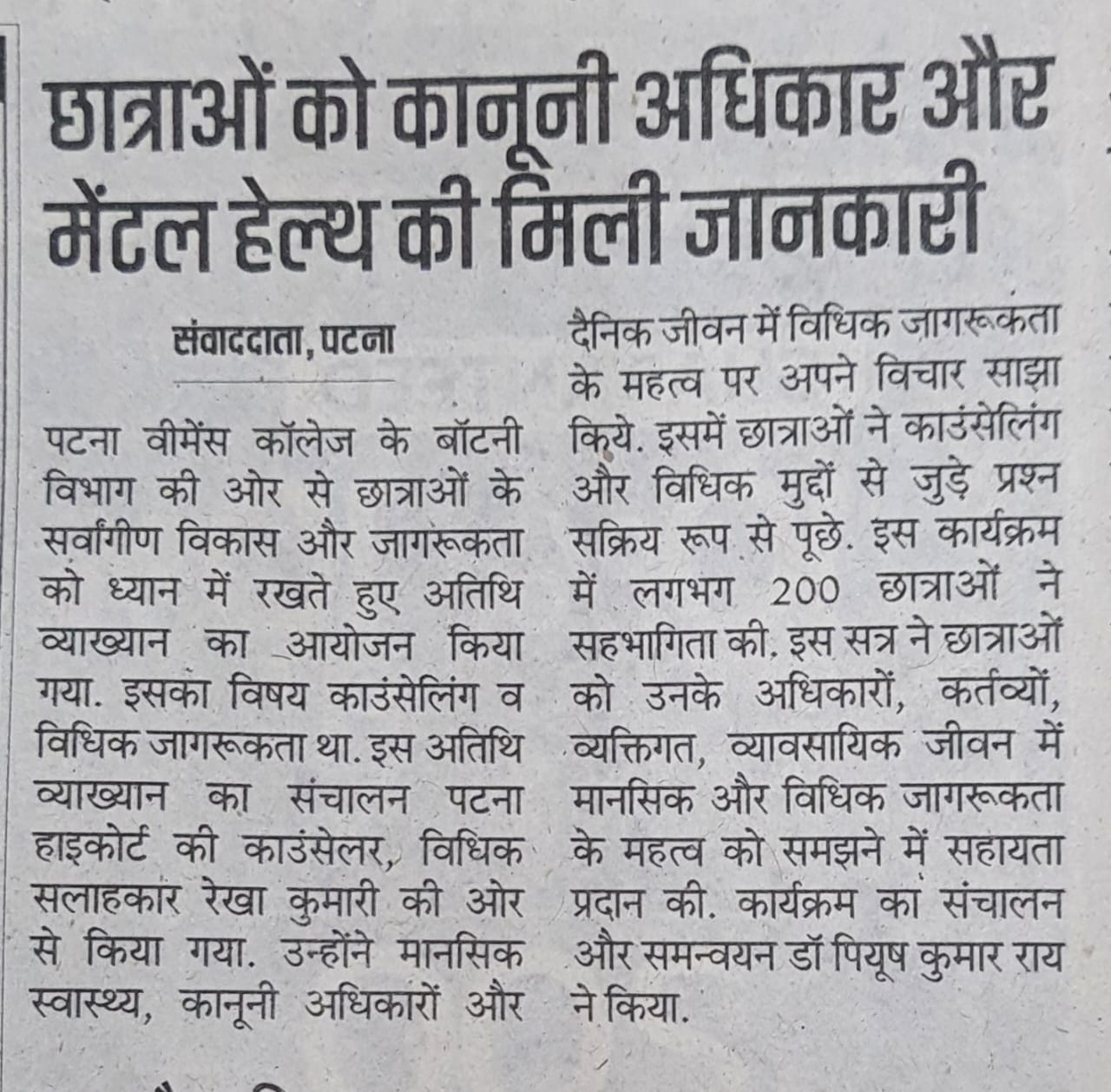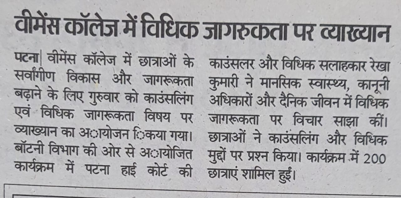 Ms. Papita Dey Biswas, Cultural Cordinator and Dr. Sushmita Choubey, Dept of Hindi, Patna Women’s College were the guests for the occassion.