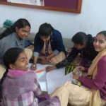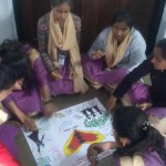 Inter class poster making competition, on the topic WOMEN’S WORLD,part 1 n 2 students of HINDI hons participated in 7 groups
