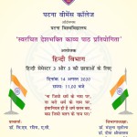 स्वतंत्रता दिवस के उपलक्ष में हिंदी विभाग द्वारा देशभक्ति गीत प्रतियोगिता (ऑनलाइन) आयोजित की गई। इस एकल गीत प्रतियोगिता में सेम II और सेम V की छात्राओं ने भाग लिया। विभागीय शिक्षिकाओं ने निर्णायकों की भूमिका निभाई। प्रतिभागियों ने अपने गीतों से उपस्थित छात्राओं का मन मोह लिया