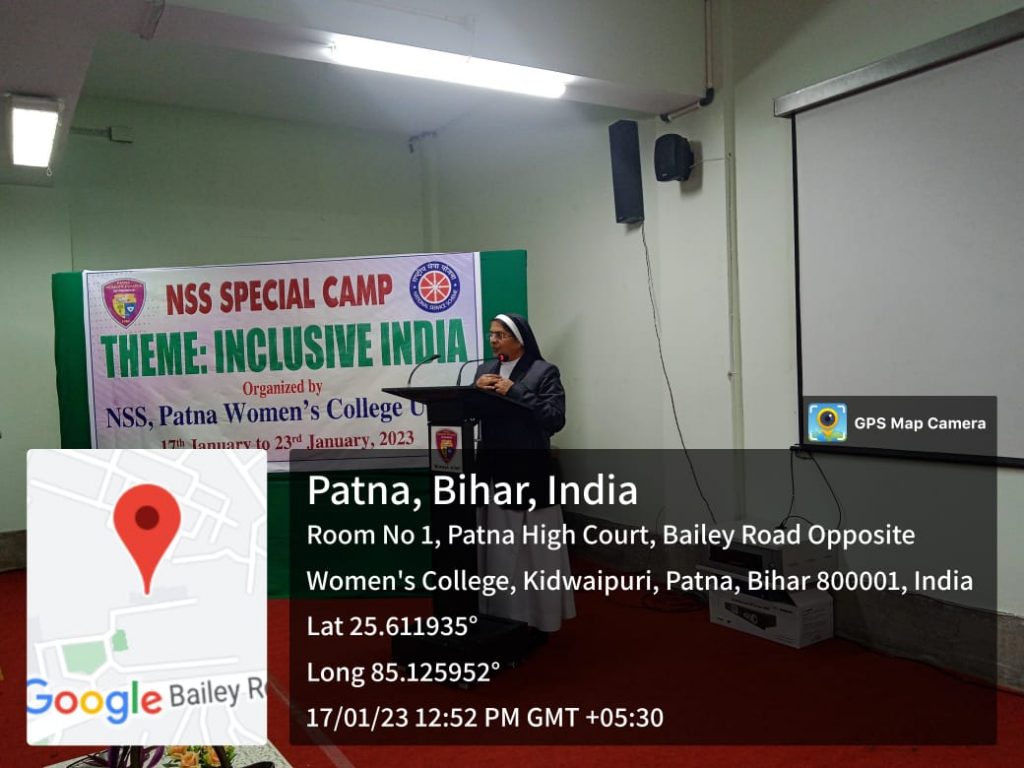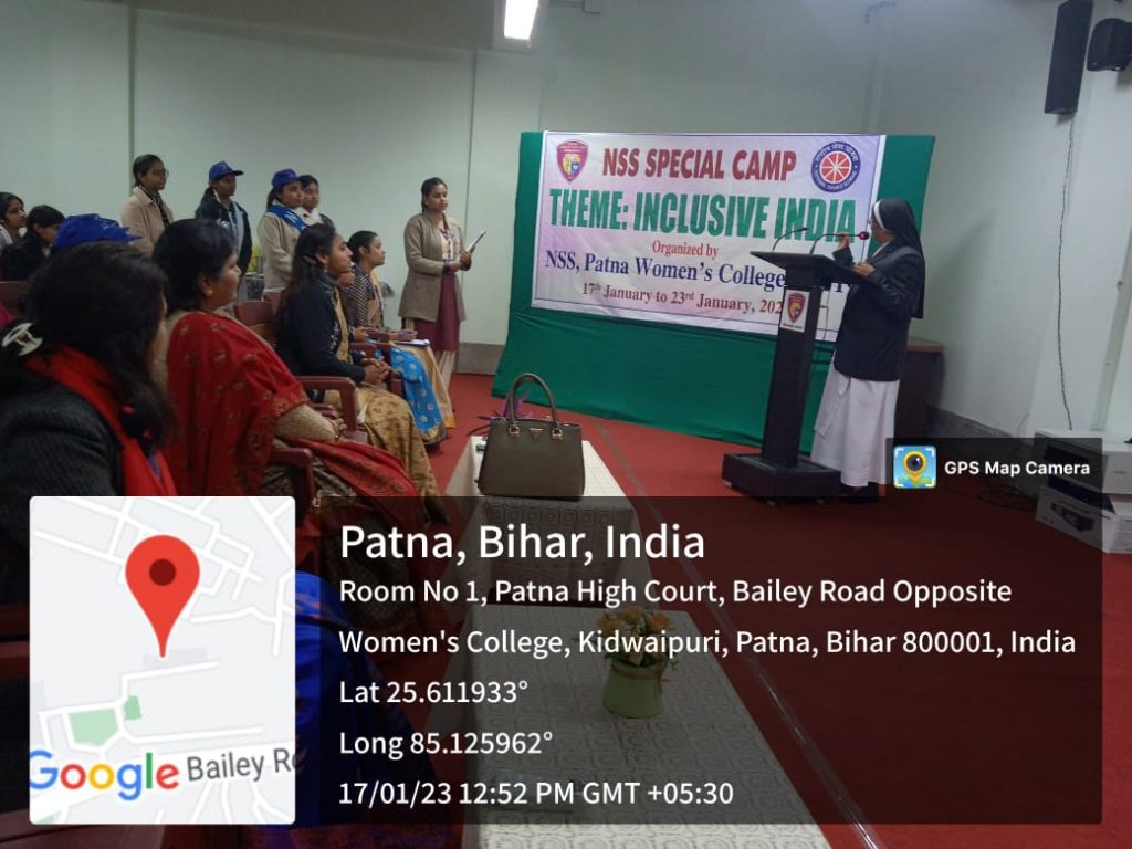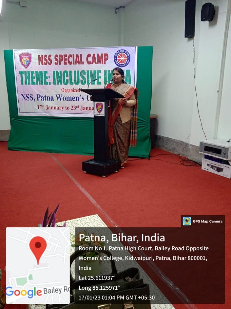 DR REKHA KUMARI ,DIRECTOR, HIGHER EDUCATION, GOVERNMENT OF BIHAR addressed the NSS students in the Valedictory session of the 7 day special camp on HEALTH AND FITNESS FOR YOUNG WOMEN on 12th May