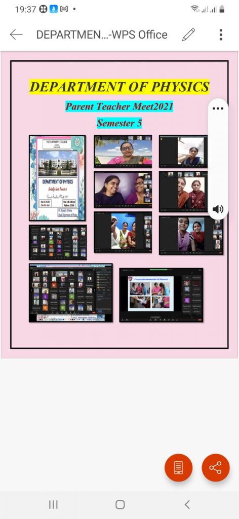 Dept of Physics conducted parent teacher meet on 26th october for sem 5 students.Program was well attended by parents and students and had very fruitful discussion regarding there career options.