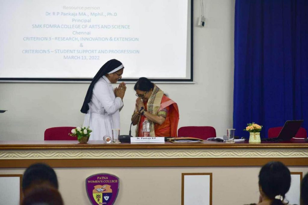 A Six-day RUSA sponsored Faculty Development Programme on ‘Capacity Building for IQAC Functioning and Accreditation Process’, organised by IQAC, Patna Women’s College was inaugurated on 10.03.2022. The Inaugural session started with the lighting of lamp and a welcome song by the students of the College. It was followed by the Presidential address by the Principal of the College, Dr. Sister M. Rashmi A.C. and the address by the IQAC Co-ordinator, Dr. Amrita Chowdhury. The Chief Guest on the occasion was Prof. Ajay Kumar Singh, Pro- Vice Chancellor, Patna University who addressed the participants and stressed on the need of research and training. The vote of thanks was proposed by Mr. Alok John, Assistant Co-ordinator, IQAC the Resource Person for the first day was Dr. Father Joseph Xavier S.J, Former Principal, Loyola College, Chennai who dealt with the first criterion of NAAC assessment, that is, curricular aspects in a detailed manner. He provided a step-by-step guide to go for NAAC Assessment and Accreditation. He also discussed the thrust areas of the New Education Policy (NEP) and its implication on the assessment and Accreditation process of the Higher Education Institutions (HEIs). The session was very informative and Interactive. The compere for today’s programme was Dr. Upasana Singh, Head, Department of Education, Patna Women’s College who conducted both the sessions smoothly.
