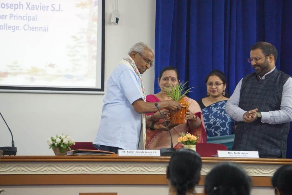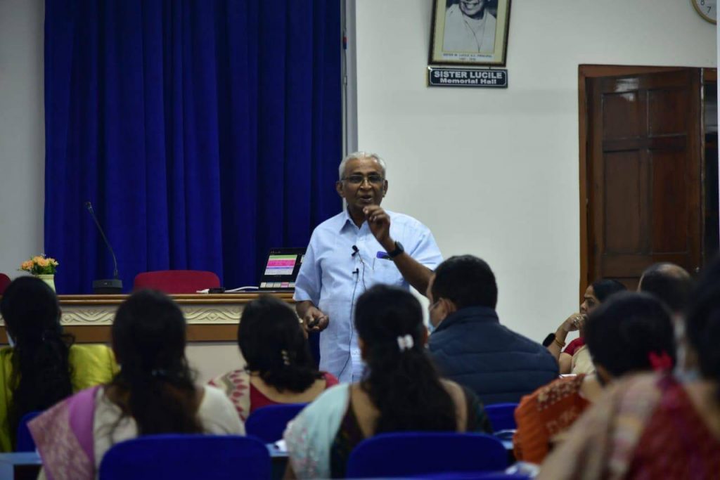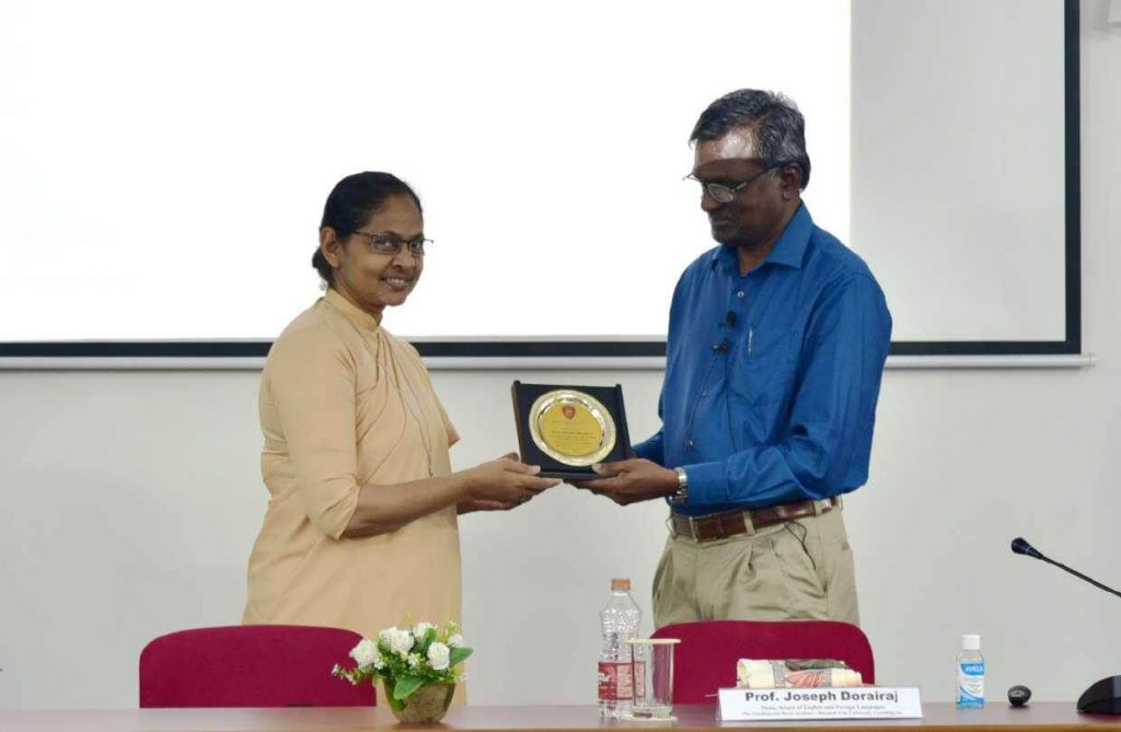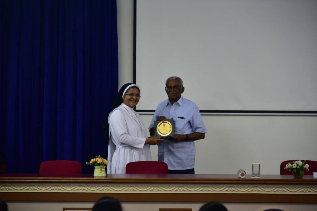 The Resource Person Dr B. S Madhukar, Former NAAC Advisor, Bengaluru was felicitated by the Vice Principal Dr. Sr. M. Tanisha A.C with a memento.