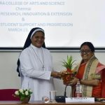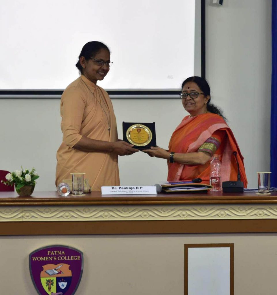 The Resource Person Dr. R.P. Pankaja, Principal SMK Fomra College of Arts and Sciences, Chennai was felicitated by the Vice Principal Dr. Sr. M. Tanisha A.C with a memento.