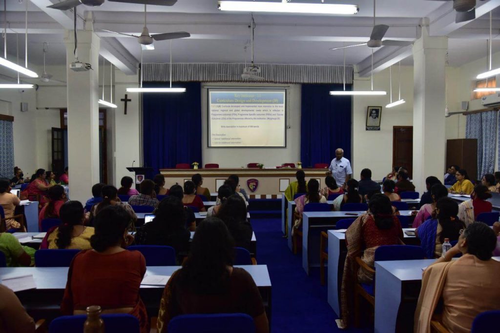 In the second day, the FDP was conducted by renowned resource person Dr. Father Joseph Xavier S.J, Former Principal, Loyala College, Chennai. The topic of today’s first session lecture was ‘Curriculum Aspect’. In this session he gave extensive lecture on development and designing programme options and courses that are in tune with emerging national and global trends and relevant to the local needs. There should be diversity and academic flexibility. He also discussed on the key indicators of the Curricular aspects like Curriculum Design and Development, Academic flexibility, Curriculum Enrichment and feedback System.