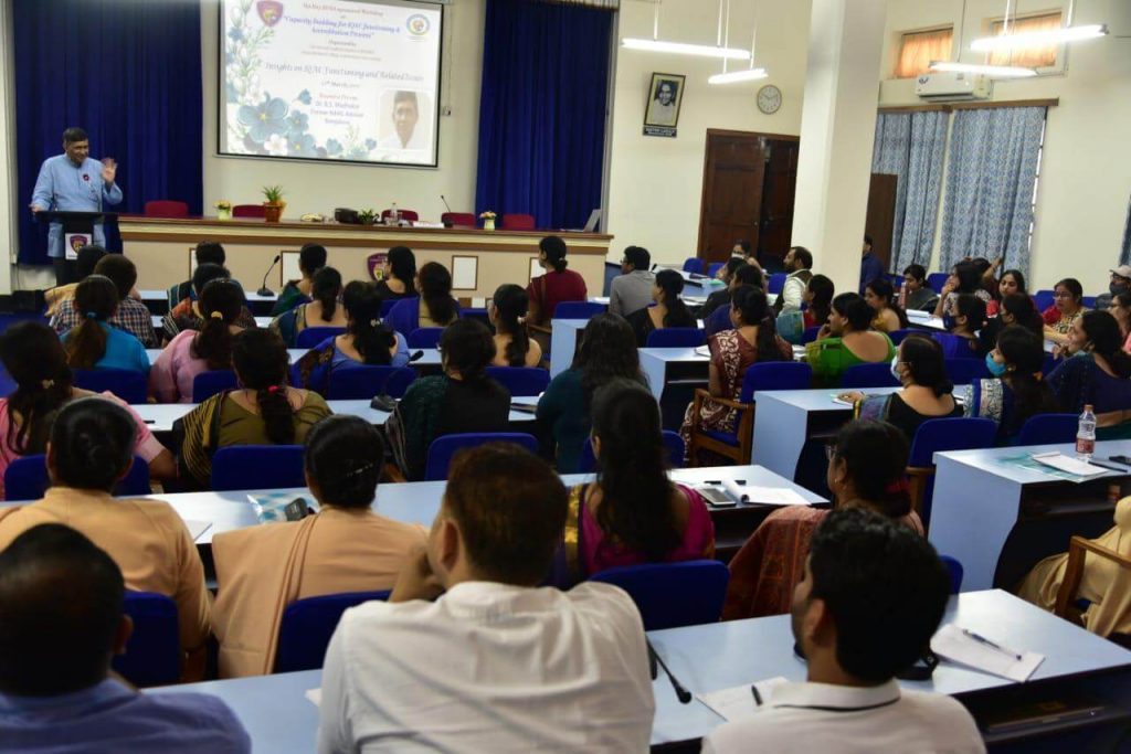 The theme of second session of the workshop was ‘Extract of Qualitative and Quantitative metrics. In the NAAC Metrics about 67 % weightage given to Quantitative metrics and 33% weightage is given to Qualitative metrics. He emphasized on bottom-up approach of teaching learning process. The confidence of students based on exposure level of the students. He also said that the teaching profession is the most fulfilling Profession.